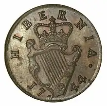 En 1722, le maître de forges William Wood (1671-1730) obtient des lettres patentes pour produire des pièces de monnaie en cuivre pour un montant total de 108 000 £[note 2],[1] pour une utilisation en Irlande[2]. Le brevet est obtenu par un pot de vin de 10 000 £[note 3],[1] à Mélusine von der Schulenburg, la duchesse de Kendal, maîtresse au roi George Ier[3]. Bien que les pièces de cuivre de Wood soient par la suite alléguées sous-pondérées, sous-dimensionnées et fabriquées à partir de matériaux de qualité inférieure[4], des analyses avaient constaté qu'elles ne l'étaient pas, avant leur approbation par le Parlement britannique pour une utilisation en Irlande[5].