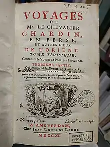 - Jean Chardin, Voyage de Paris à Ispahan I. De Paris à Tiflis. II. De Tiflis à Ispahan, introduction, notes et bibliographie de Stéphane Yerasimos, Paris, La Découverte, 1983, 320 et 320 p.