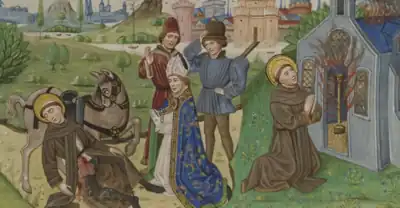Saint Leufroy est représenté dans La Légende dorée aux côtés de l'évêque d'Évreux Didier.