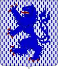 Blasonnement : D'argent au lion d'azur, la queue fourchue, armé et lampassé de gueules, accompagné de neuf billettes d'azur rangées en ordre[29].