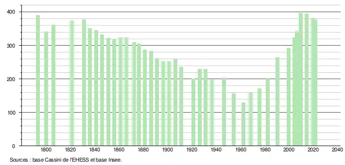 - Fiches Insee - Populations légales de la commune pour les années 2006, 2007, 2008, 2009, 2010, 2011, 2012, 2013, 2014, 2015, 2016, 2017, 2018, 2019, 2020 et 2021.