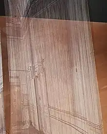 Elle produit ainsi des œuvres conçues à partir des plans des lieux dans lesquels elle intervient, exhumant les sédimentations historiques des bâtiments[20]. Sa mappemonde réalisée de cette manière en 2012 à la Maison de l'Amérique Latine avait déjà attirée l'attention sur elle[21],[22].