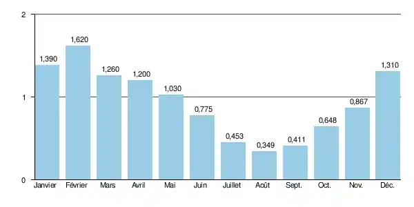 Aux étiages, le VCN3 peut chuter jusque 0,092 m3/s (92 litres/s), ce qui n'est pas encore très sévère pour un aussi modeste cours d'eau. Ce fait est fréquent parmi les rivières de la région coulant dans les régions orientales du Limousin.