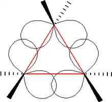 Les liaisons banane sont des liaisons chimiques particulières dans lesquelles l'état d'hybridation ordinaire de deux atomes établissant une liaison est modifié par accroissement ou réduction de la composante de l'orbitale atomique s pour s'accommoder d'une géométrie contrainte[3],[4],[5],[6]. De telles liaisons se rencontrent dans des composés tels que le cyclopropane C3H6, l'oxyde d'éthylène C2H4O et l'aziridine C2H4NH.