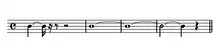 Le signe de la liaison peut enjamber une barre de mesure : l'avantage du procédé — sur le point de prolongation, par exemple — est que la durée ainsi obtenue peut être à cheval sur plusieurs mesures.