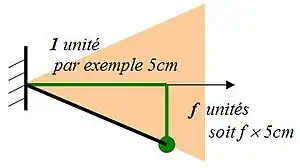 Le tracé du cône de frottement est inévitable dans les deux cas; Or la caractéristique donnée est le coefficient de frottement (tangente de l’angle). Cela est possible sans calcul en utilisant la méthode suivante (qui s’appuie sur les relations dans le triangle rectangle : tan = côté opposé / côté adjacent) :