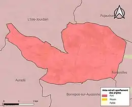 Le retrait-gonflement des sols argileux est susceptible d'engendrer des dommages importants aux bâtiments en cas d’alternance de périodes de sécheresse et de pluie. La totalité de la commune est en aléa moyen ou fort (94,5 % au niveau départemental et 48,5 % au niveau national). Sur les 225 bâtiments dénombrés sur la commune en 2019, 225 sont en aléa moyen ou fort, soit 100 %, à comparer aux 93 % au niveau départemental et 54 % au niveau national. Une cartographie de l'exposition du territoire national au retrait gonflement des sols argileux est disponible sur le site du BRGM[20],[Carte 3].