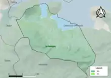 L'occupation des sols de la commune, telle qu'elle ressort de la base de données européenne d’occupation biophysique des sols Corine Land Cover (CLC), est marquée par l'importance des forêts et milieux semi-naturels (61,4 % en 2018), une proportion identique à celle de 1990 (61,3 %). La répartition détaillée en 2018 est la suivante : forêts (36,8 %), cultures permanentes (25,2 %), espaces ouverts, sans ou avec peu de végétation (14,2 %), milieux à végétation arbustive et/ou herbacée (10,4 %), eaux continentales[Note 5] (9,9 %), zones agricoles hétérogènes (3,5 %)[17]. L'évolution de l’occupation des sols de la commune et de ses infrastructures peut être observée sur les différentes représentations cartographiques du territoire : la carte de Cassini (XVIIIe siècle), la carte d'état-major (1820-1866) et les cartes ou photos aériennes de l'IGN pour la période actuelle (1950 à aujourd'hui)[Carte 1].