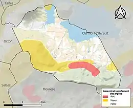 Le retrait-gonflement des sols argileux est susceptible d'engendrer des dommages importants aux bâtiments en cas d’alternance de périodes de sécheresse et de pluie. 21,8 % de la superficie communale est en aléa moyen ou fort (59,3 % au niveau départemental et 48,5 % au niveau national). Sur les 117 bâtiments dénombrés sur la commune en 2019, 73 sont en aléa moyen ou fort, soit 62 %, à comparer aux 85 % au niveau départemental et 54 % au niveau national. Une cartographie de l'exposition du territoire national au retrait gonflement des sols argileux est disponible sur le site du BRGM[21],[Carte 2].