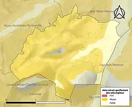 Le retrait-gonflement des sols argileux est susceptible d'engendrer des dommages importants aux bâtiments en cas d’alternance de périodes de sécheresse et de pluie[42]. 80,3 % de la superficie communale est en aléa moyen ou fort (59 % au niveau départemental et 48,5 % au niveau national)[Carte 6]. Depuis le , en application de la loi ELAN, différentes contraintes s'imposent aux vendeurs, maîtres d'ouvrages ou constructeurs de biens situés dans une zone classée en aléa moyen ou fort[Note 8],[43].