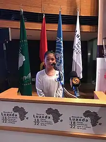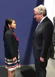 Licypriya Kangujam s'adresse aux dirigeants mondiaux lors de la Conférence des Nations unies sur le climat 2019, en leur demandant de prendre des mesures climatiques immédiates[18].