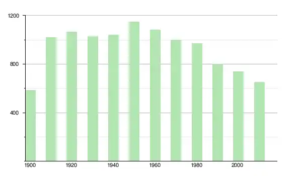 | 1960 | 1 081 | ▼ −5,75 % | |