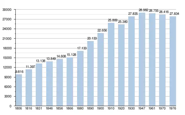 - Source : DGS - Remarque: 1806 jusqu'à 1981=recensement; depuis 1990=nombre d'habitants chaque 1er janvier[8]