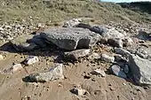 | Menhir couché près du camp du Grand Vitain - pierre du diable | Loir-et-Cher | Averdon | mégalithe | tradition | « Les sorciers viennent y danser le sabbat les nuits de pleine lune »[73] | (47° 39′ 38″ N, 1° 17′ 24″ E) |