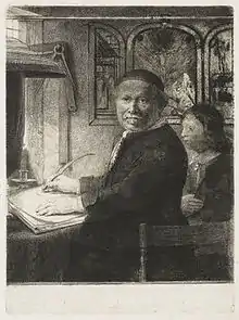 - Portrait de Coppenol peint par Rembrandt, préparatoire à la grande planche. Voir ici.