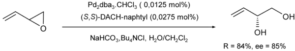 De plus, certaines AAA catalysées par le molybdène peuvent être plus régio-, énantio- ou diastéréosélectives que celles catalysées par le palladium[10]. Le ligand de Trost DACH-pyridyl est prépondérant pour ce genre de réaction[19] :