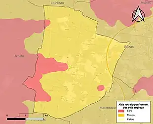 Le retrait-gonflement des sols argileux est susceptible d'engendrer des dommages importants aux bâtiments en cas d’alternance de périodes de sécheresse et de pluie. La totalité de la commune est en aléa moyen ou fort (67,4 % au niveau départemental et 48,5 % au niveau national). Sur les 162 bâtiments dénombrés sur la commune en 2019, 162 sont en aléa moyen ou fort, soit 100 %, à comparer aux 84 % au niveau départemental et 54 % au niveau national. Une cartographie de l'exposition du territoire national au retrait gonflement des sols argileux est disponible sur le site du BRGM[23],[Carte 2].