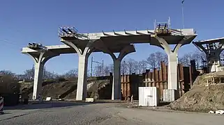 La construction de la ligne a débuté à l'automne 2007 par la partie tangentielle à la E19. La ligne est ouverte le 7 juin 2012 et entre en service le 10 juin 2012[1].
