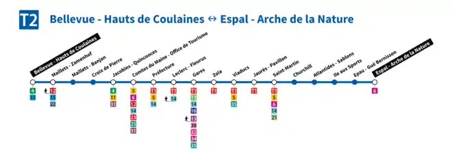 | Ligne 2 du tramway du Mans | |||||||||||||||||||||||||||||||||||||||||||||||||||||||||||||||||||||||||||||||||||||||||||||||||||||||||||||||||||||||||||||||||||||||||||||||||||||||||||||||||||||||||||||||||||||||||||||||||||||||||||||