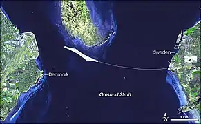 Vue satellitaire de la ligne Copenhague-Malmö (document de la NASA).