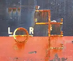 Lorsque le navire est conçu pour transporter du bois, des lignes de charges différentes sont peintes et les symboles sont précédés de la lettre L (de l'anglais lumber). Les symboles d'eau douce et d'eau salée sont séparés par une ligne verticale.