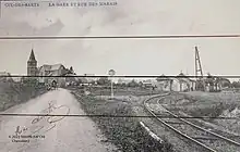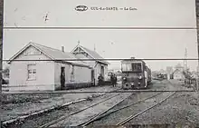 ![]() Photo de carte postale, illustrant l'arrivée dans le cul de sac de la gare |
