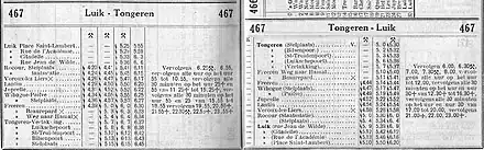 - 467 en [9], numéro partagé entre les lignes 467A Liège - Tongres, 467/2 Liège - Bassenge, (467C) 50 Liège - Rocourt et (467D) 51 Liège - Vottem.
