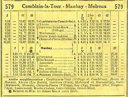 | Tableaux horaires[note 1] | 579 (1931) | |