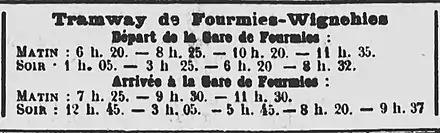 Horaire publié dans le Journal de Fourmies, n°574 du .