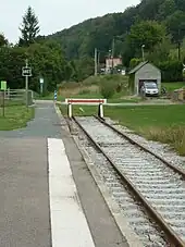 Extrémité de la ligne à Rolleville. Au-delà la voie est neutralisée en direction de Tourville-les-Ifs.