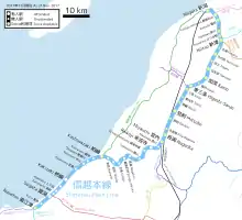 | Naoetsu | 直江津 | 0 | Echigo Tokimeki Railway : Myōkō Haneuma (interconnexion), Nihonkai Hisui | Jōetsu | Préfecture de Niigata |