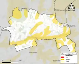 Le retrait-gonflement des sols argileux est susceptible d'engendrer des dommages importants aux bâtiments en cas d’alternance de périodes de sécheresse et de pluie. 37,4 % de la superficie communale est en aléa moyen ou fort (84,7 % au niveau départemental et 48,5 % au niveau national). Sur les 133 bâtiments dénombrés sur la commune en 2019, 25 sont en aléa moyen ou fort, soit 19 %, à comparer aux 86 % au niveau départemental et 54 % au niveau national. Une cartographie de l'exposition du territoire national au retrait gonflement des sols argileux est disponible sur le site du BRGM[21],[22].