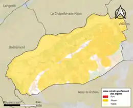 Le retrait-gonflement des sols argileux est susceptible d'engendrer des dommages importants aux bâtiments en cas d’alternance de périodes de sécheresse et de pluie. 88 % de la superficie communale est en aléa moyen ou fort (90,2 % au niveau départemental et 48,5 % au niveau national). Sur les 611 bâtiments dénombrés sur la commune en 2019, 511 sont en aléa moyen ou fort, soit 84 %, à comparer aux 91 % au niveau départemental et 54 % au niveau national. Une cartographie de l'exposition du territoire national au retrait gonflement des sols argileux est disponible sur le site du BRGM[29],[30].