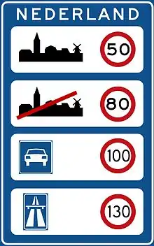 Aux Pays-Bas (abréviation officielle: NL - pour "Nederland"), les limitations de vitesse sont les suivantes :