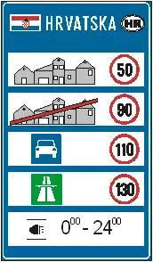 En Croatie (abréviation officielle: HR - pour "Hrvatska"), les limitations de vitesse en vigueur sont les suivantes :