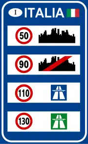 En Italie (abréviation officielle: I), les limitations de vitesse en vigueur sont les suivantes[1] :