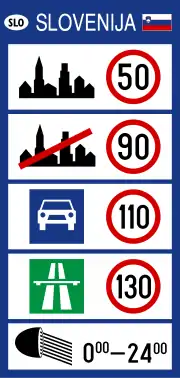 En Slovénie (abréviation officielle: SLO), la vitesse est limitée à :