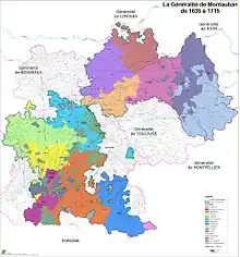 En 1716, la partie sud-ouest est détachée de la généralité de Montauban pour former notamment la Généralité d'Auch.