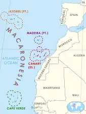 La Macaronésie est un ensemble d'îles de l'océan Atlantique : Açores, Madère, îles Canaries et îles du Cap-Vert. Ces dernières forment un État indépendant : le Cap-Vert, considéré comme africain. Les autres sont des dépendances de pays considérés comme européens : l'Espagne et le Portugal (et sont d'ailleurs des territoires associés à l'Union européenne).