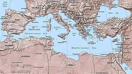 En mer Méditerranée, à part quelques îles proches des côtes du Maghreb (Djerba, Kerkennah, etc.), la quasi-totalité des îles sont plus proches du continent européen et lui sont en général associées : Malte n'est située qu'à 80 km des côtes de Sicile et à 250 km de l'Italie continentale (contre près de 300 km des côtes tunisiennes). De même, l'île de Gavdos, la plus méridionale des îles grecques, est nettement plus proche des côtes européennes que des côtes africaines.
