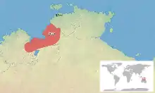 Cette espèce est endémique d'Australie[1]. Elle se rencontre du niveau de la mer à 200 m d'altitude dans l'est du comté de Wyndham-East Kimberley en Australie-Occidentale et dans la pointe Nord-Ouest du Territoire du Nord[1],[2].