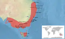 Cette espèce est endémique du Sud-Est de l'Australie. Elle se rencontre en Australie-Méridionale, au Victoria, en Nouvelle-Galles du Sud et au Queensland et en Tasmanie[1],[2].