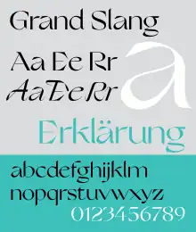 Grand Slang, exemple de police de caractères linéale grotesque.