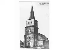 L'ancien clocher, la tour était surmontée d'une flèche clocher effilé.