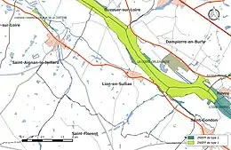 Au point d'entrée de la Loire sur la commune, se trouvent une île et, en face de l'île en rive gauche (partiellement sur la commune), une berge ; toutes deux sont faites d'étendues de sable partiellement boisées et sont importantes pour la faune et en particulier pour les oiseaux.