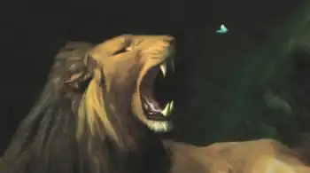 Lion tentant de saisir un papillon