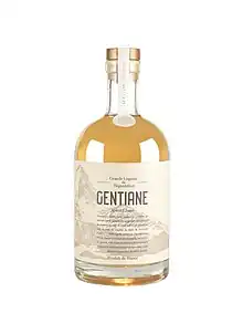 La liqueur de gentiane est une boisson apéritive amère et alcoolisée fabriquée par macération et distillation de racines de gentiane jaune d'Auvergne (Gentiana lutea) qui lui confèrent son amertume bien spécifique. On retrouve cette plante en importantes quantités dans les monts du Cantal, entre le Puy Mary et le Plomb du Cantal.