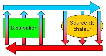 Typiquement, le liquide de refroidissement suit un parcours fermé, à travers la partie dont on veut extraire la chaleur (la chaleur est captée), puis à travers la partie du circuit qui sert au refroidissement (l'énergie est dissipée). Lors de son passage dans la zone à refroidir, le liquide doit passer :