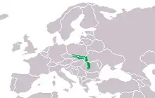 Cette espèce se rencontre entre 200 et 2 000 m d'altitude (le plus souvent entre 500 et 1 500 m) dans les Carpates et les Tatras en Tchéquie, en Pologne, en Slovaquie, en Roumanie et en Ukraine[1]. Elle a par ailleurs été introduite en Bavière mais de façon limitée.
