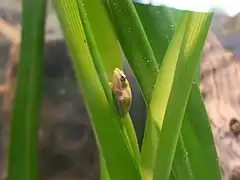 Les têtards mesurent de un à 1,3 mm à la métamorphose[6].